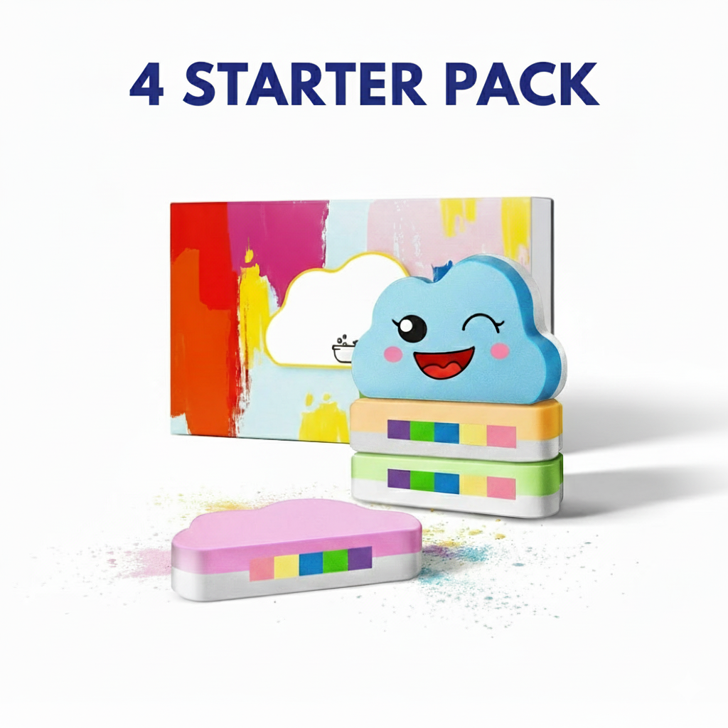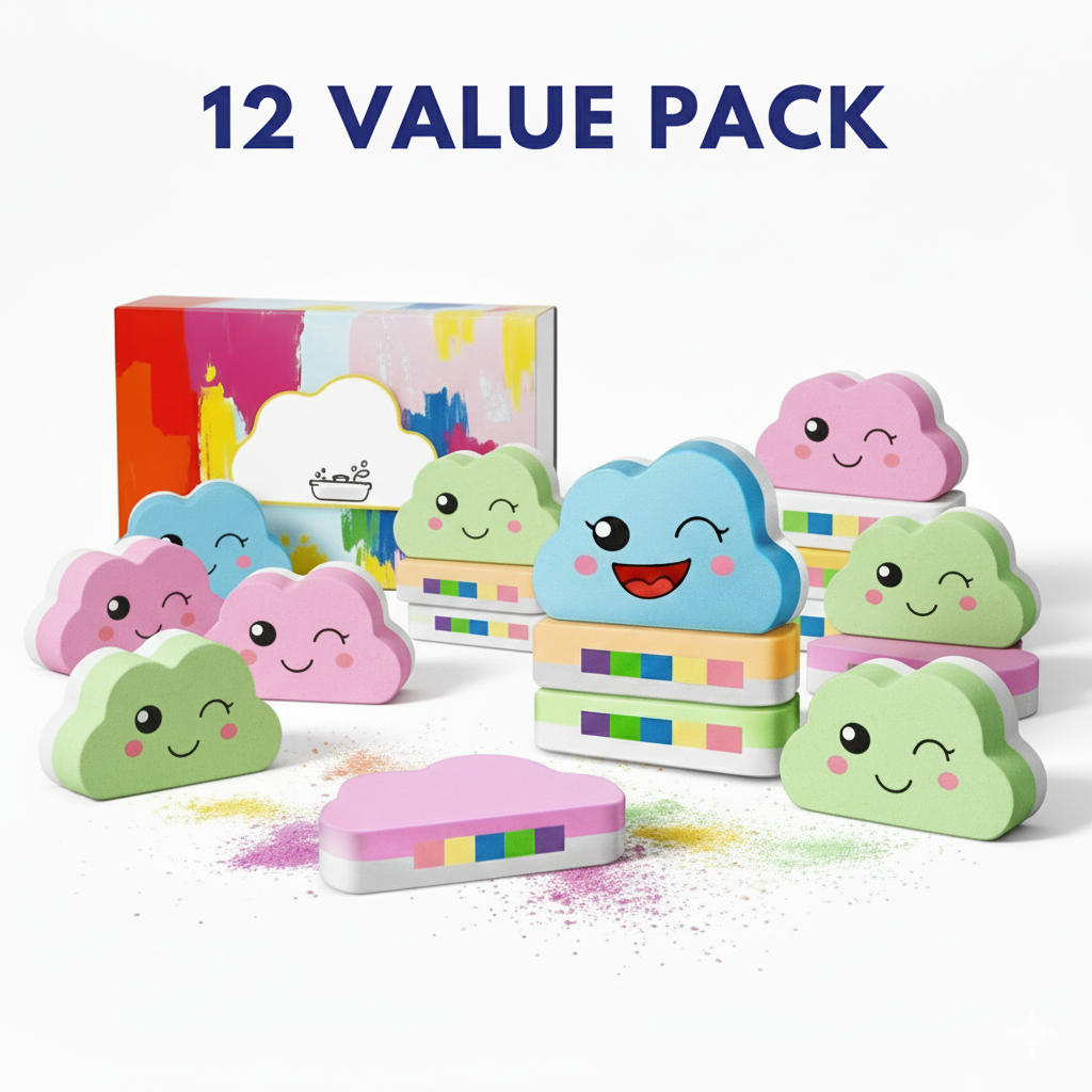 No staining. The foam is designed to dissolve completely and rinse away with regular water. Your white tub stays white, and your kid's skin won't look like they wrestled with a unicorn.